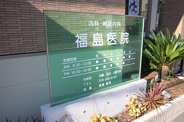 アルミ複合板、アクリル板、ステンレス板などを使った、3~10㎜程度の薄型の看板です。